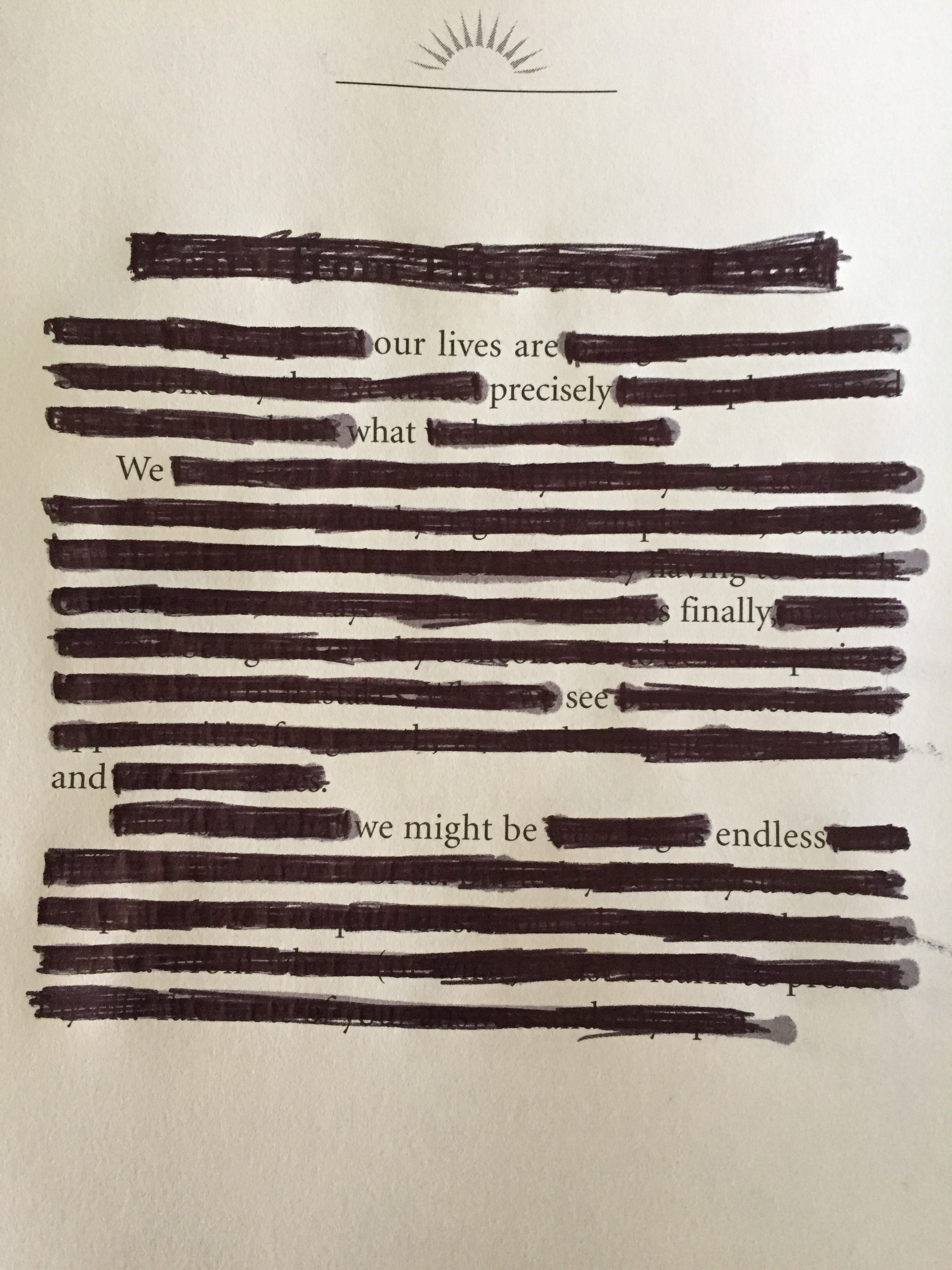 I still haven’t read it – and now a bunch of the words are blacked out and it’s down a page.
