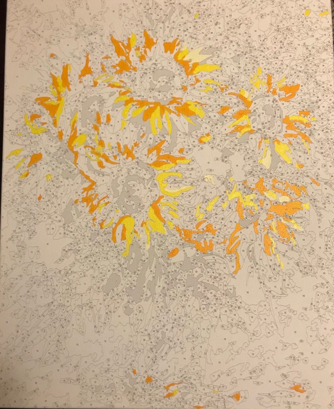 We started our paint by numbers last night. It’s a bit of a vision test but pretty fun and will certainly fill some time.