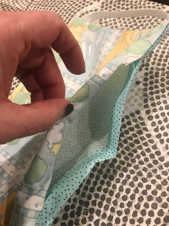 I made one mask. It’s a little wide – a big headed person could wear it better than me (I don’t want to wear it and I am in deep denial that I will ever have to.)