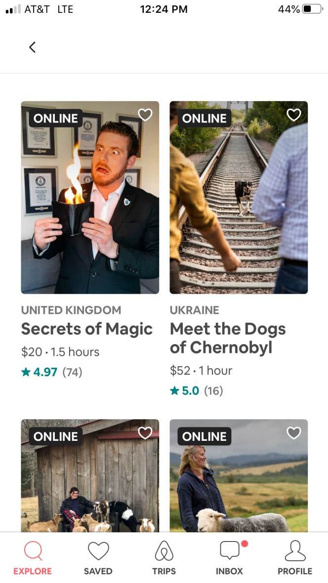 I went onto AirBnB to see what kind of low-travel travel I might be able to plan for later in the summer and they are offering a wide range of virtual “experiences.”