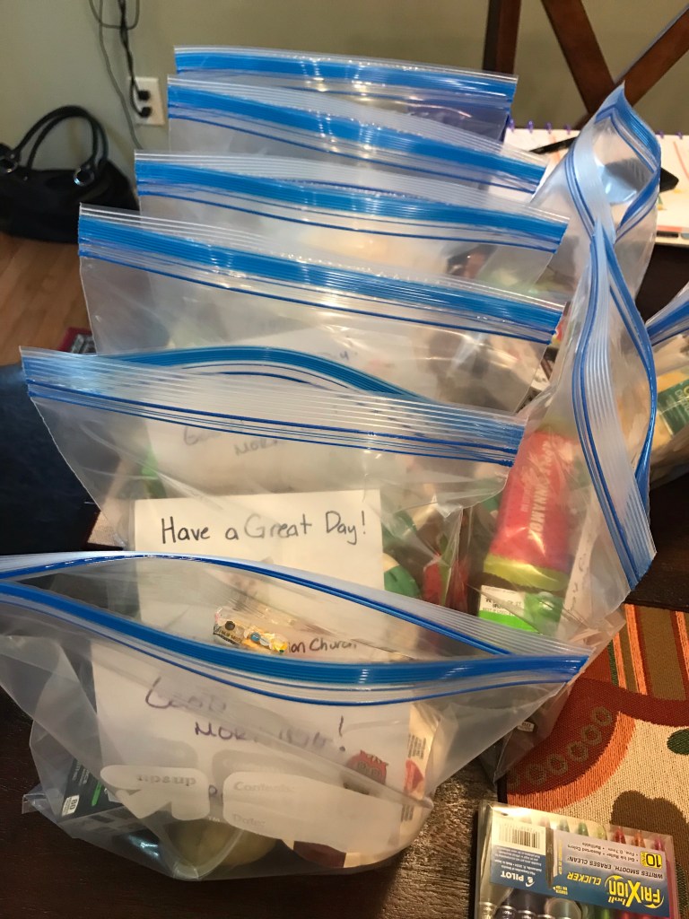 Also, Amanda and I worked on packing up the breakfast bags for my parents’ church.